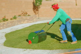 grass. Rolling is done in at least two perpendicular passes over the lawn